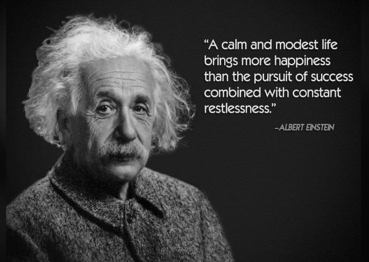 It seems clear to me that life is about balance. I will always continue to accomplish my goals, but never at the price of my peace of mind. By the way, Einstein wrote this on a napkin and gave it to a courier because he had no change for a tip. In 1917, the napkin sold for $1.6 million dollars. Einstein also wrote:
