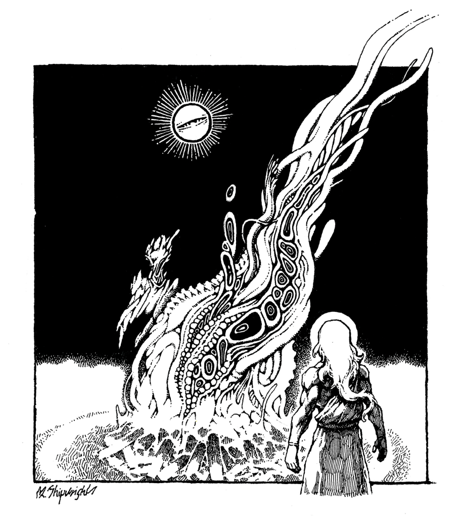 DENIZENEncounter the next Omen from a random Denizen in this Realm.This is how to have a cast beyond the Myths. And conveniently, I’ve already created them for you. :) Check out the Dreaming Dragonslayer Denizens on itch!And just so I’m not just straight SHILLING, here’s the alternative for denizens of the Realm: Encounter a random character seen before.Then the referee maintains a list of recurring NPCs that travel the wilderness from holdings or past omens and myths. This can even be how NPCs from Myths are encountered after their Myth is resolved. Weaving the mythic tapestry invites callbacks to old threads and themes. I’m mixing metaphors a bit, but you get it. NOW LET’S APPLY!So maybe you want more exploration and so your Wilderness Roll might look like this: